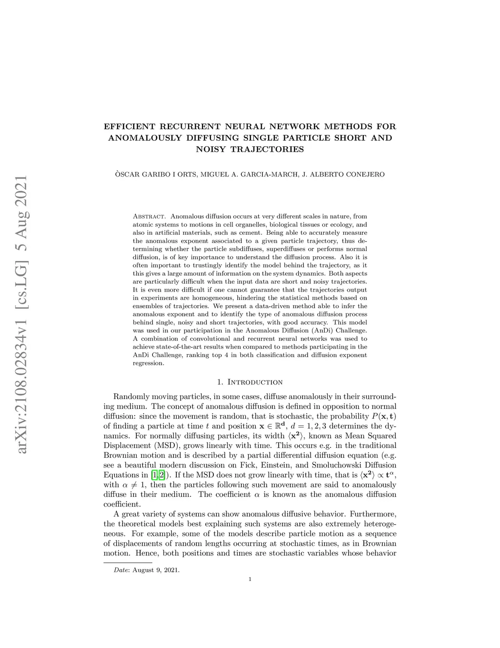 Anomalous diffusion occurs at very different scales in nature, from atomic systems to motions in cell organelles, biological tissues or ecology, and also in artificial materials, such as cement. Being able to accurately measure the anomalous exponent associated with a given particle trajectory, thus determining whether the particle subdiffuses, superdiffuses or performs normal diffusion is of key importance to understand the diffusion process. Also, it is often important to trustingly identify the model behind the trajectory, as this gives a large amount of information on the system dynamics. Both aspects are particularly difficult when the input data are short and noisy trajectories. It is even more difficult if one cannot guarantee that the trajectories output in experiments is homogeneous, hindering the statistical methods based on ensembles of trajectories. We present a data-driven method able to infer the anomalous exponent and to identify the type of anomalous diffusion process behind single, noisy and short trajectories, with good accuracy. This model was used in our participation in the Anomalous Diffusion (AnDi) Challenge. A combination of convolutional and recurrent neural networks were used to achieve state-of-the-art results when compared to methods participating in the AnDi Challenge, ranking top 4 in both classification and diffusion exponent regression.