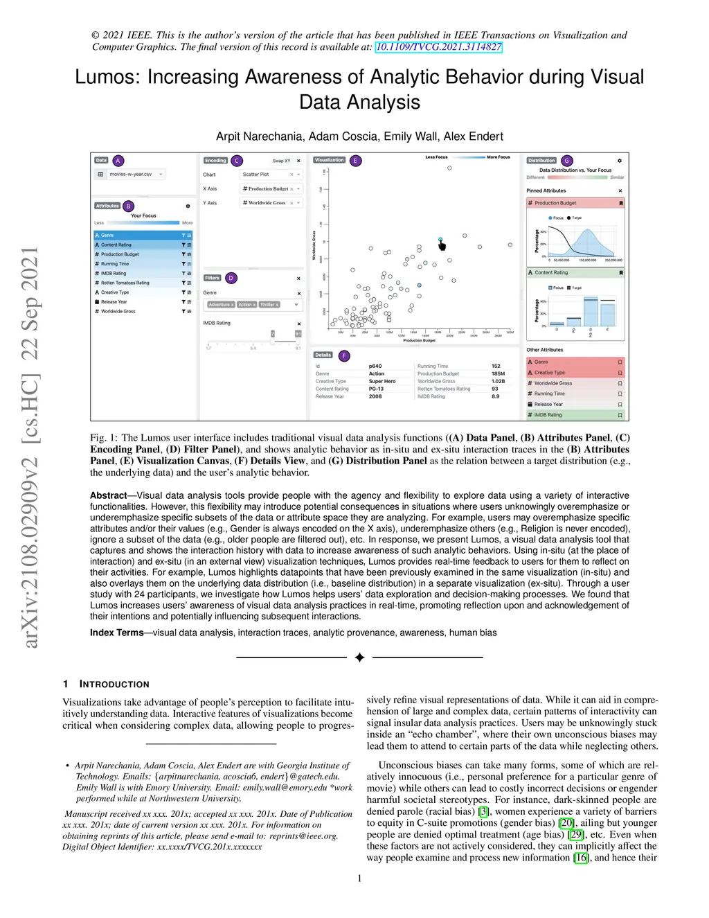 Lumos: Increasing Awareness of Analytic Behavior during Visual Data