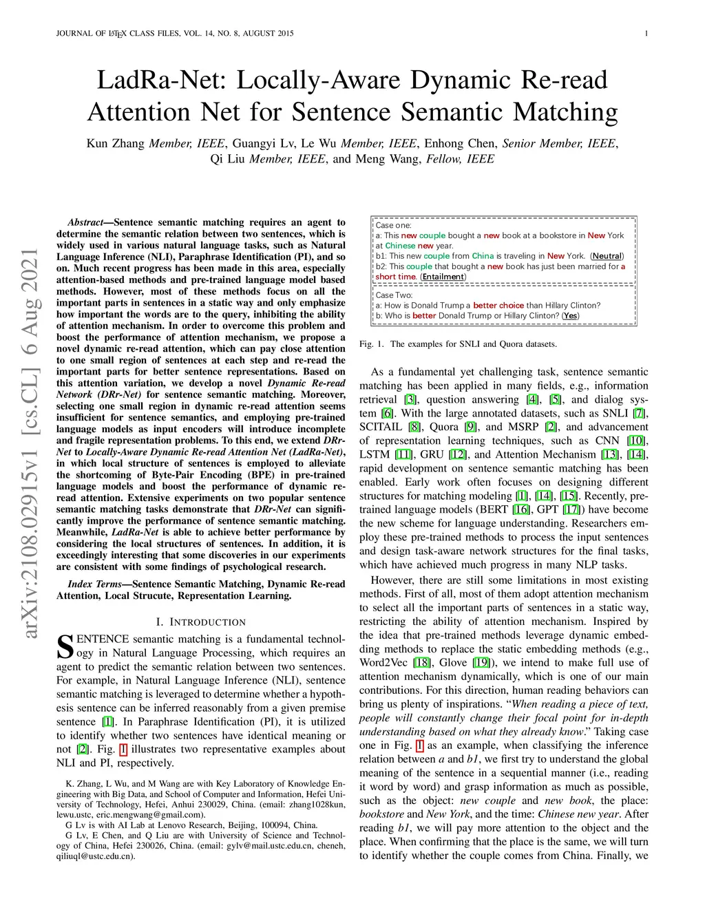 LadRa-Net: Locally-Aware Dynamic Re-read Attention Net for Sentence