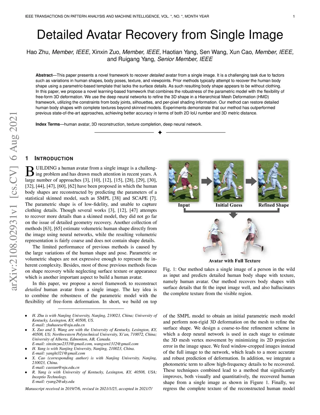 Detailed Avatar Recovery from Single Image