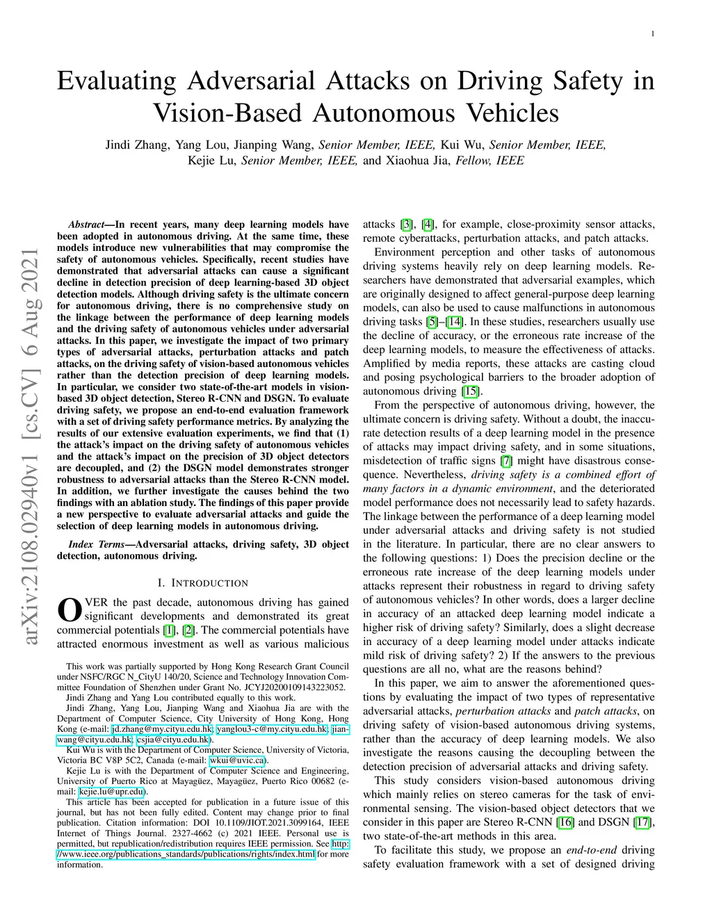 Evaluating Adversarial Attacks on Driving Safety in Vision-Based