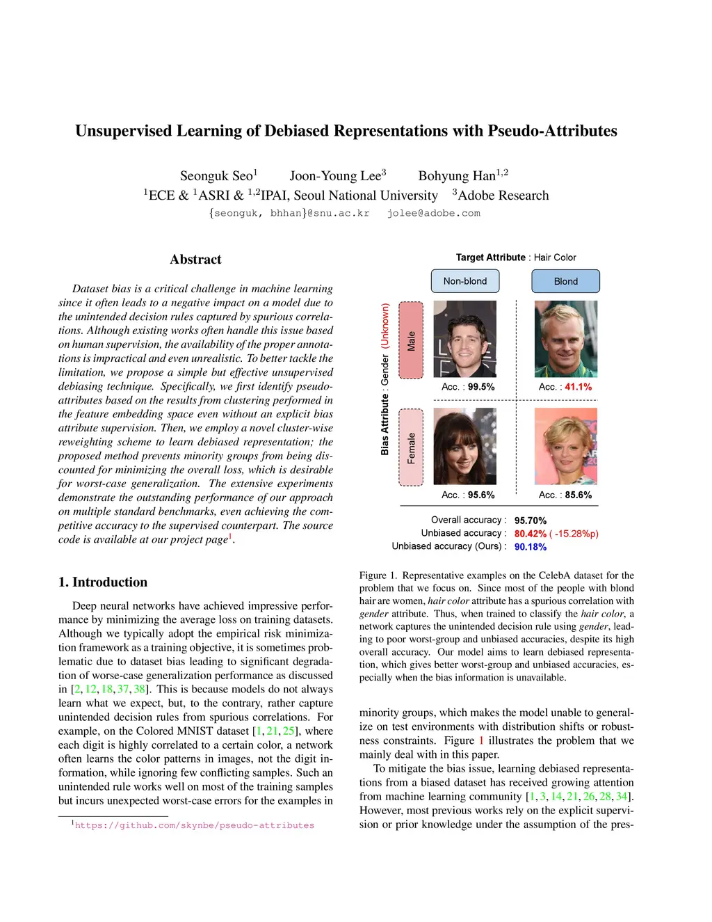 Unsupervised Learning of Debiased Representations with Pseudo-Attributes