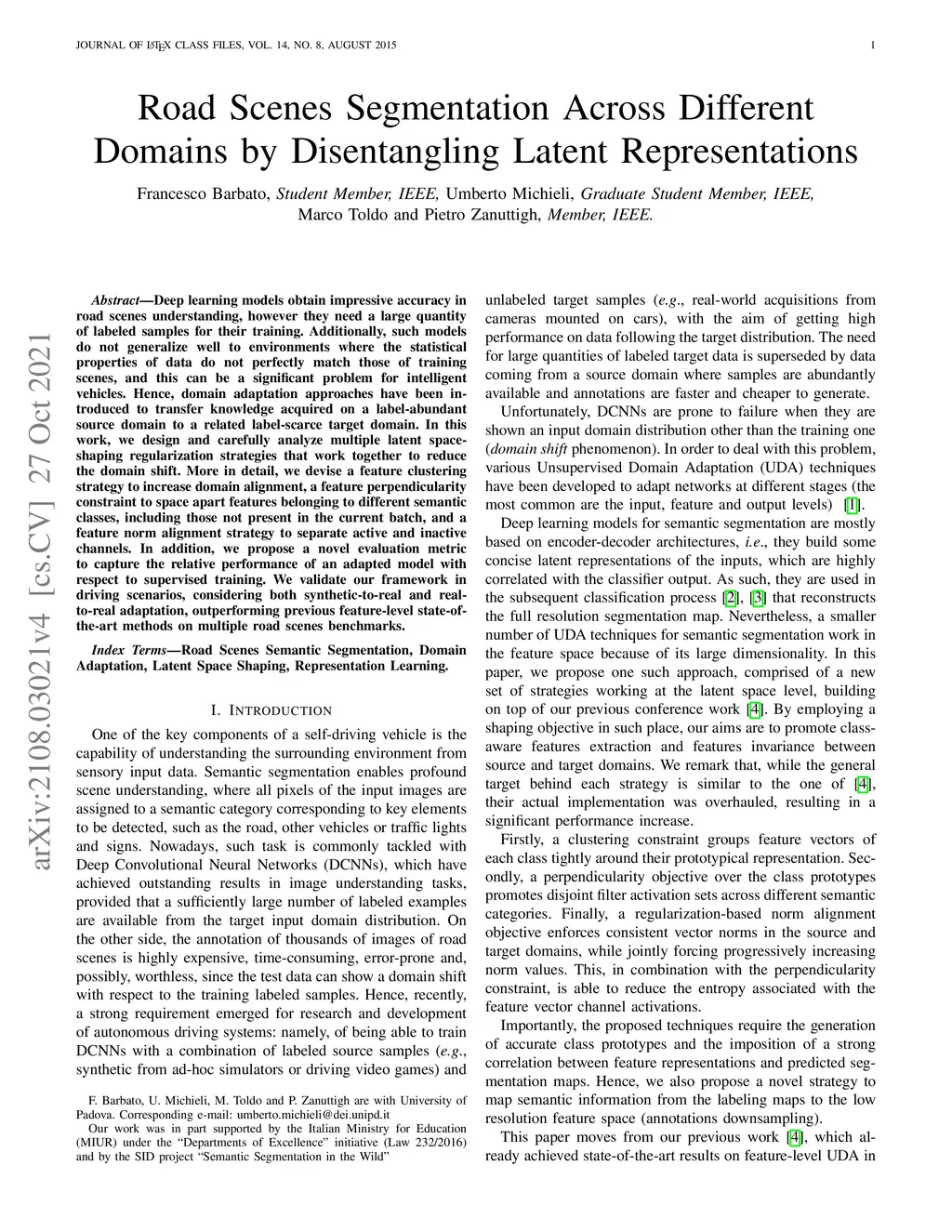 Road Scenes Segmentation Across Different Domains by Disentangling