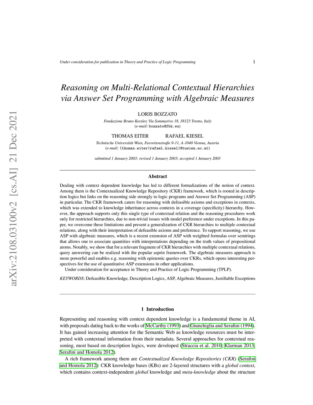 Reasoning on Multi-Relational Contextual Hierarchies via Answer Set