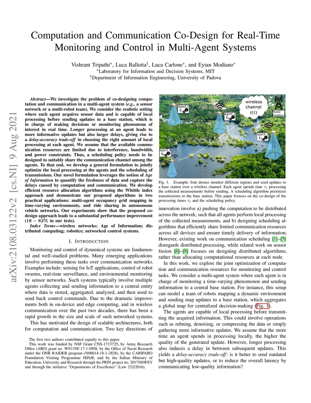 We investigate the problem of co-designing computation and communication in a multi-agent system (e.g. a sensor network or a multi-robot team). We consider the realistic setting where each agent acquires sensor data and is capable of local processing before sending updates to a base station, which is in charge of making decisions or monitoring phenomena of interest in real time. Longer processing at an agent leads to more informative updates but also larger delays, giving rise to a delay-accuracy-tradeoff in choosing the right amount of local processing at each agent. We assume that the available communication resources are limited due to interference, bandwidth, and power constraints. Thus, a scheduling policy needs to be designed to suitably share the communication channel among the agents. To that end, we develop a general formulation to jointly optimize the local processing at the agents and the scheduling of transmissions. Our novel formulation leverages the notion of Age of Information to quantify the freshness of data and capture the delays caused by computation and communication. We develop efficient resource allocation algorithms using the Whittle index approach and demonstrate our proposed algorithms in two practical applications: multi-agent occupancy grid mapping in time-varying environments, and ride sharing in autonomous vehicle networks. Our experiments show that the proposed co-design approach leads to a substantial performance improvement (18-82% in our tests).