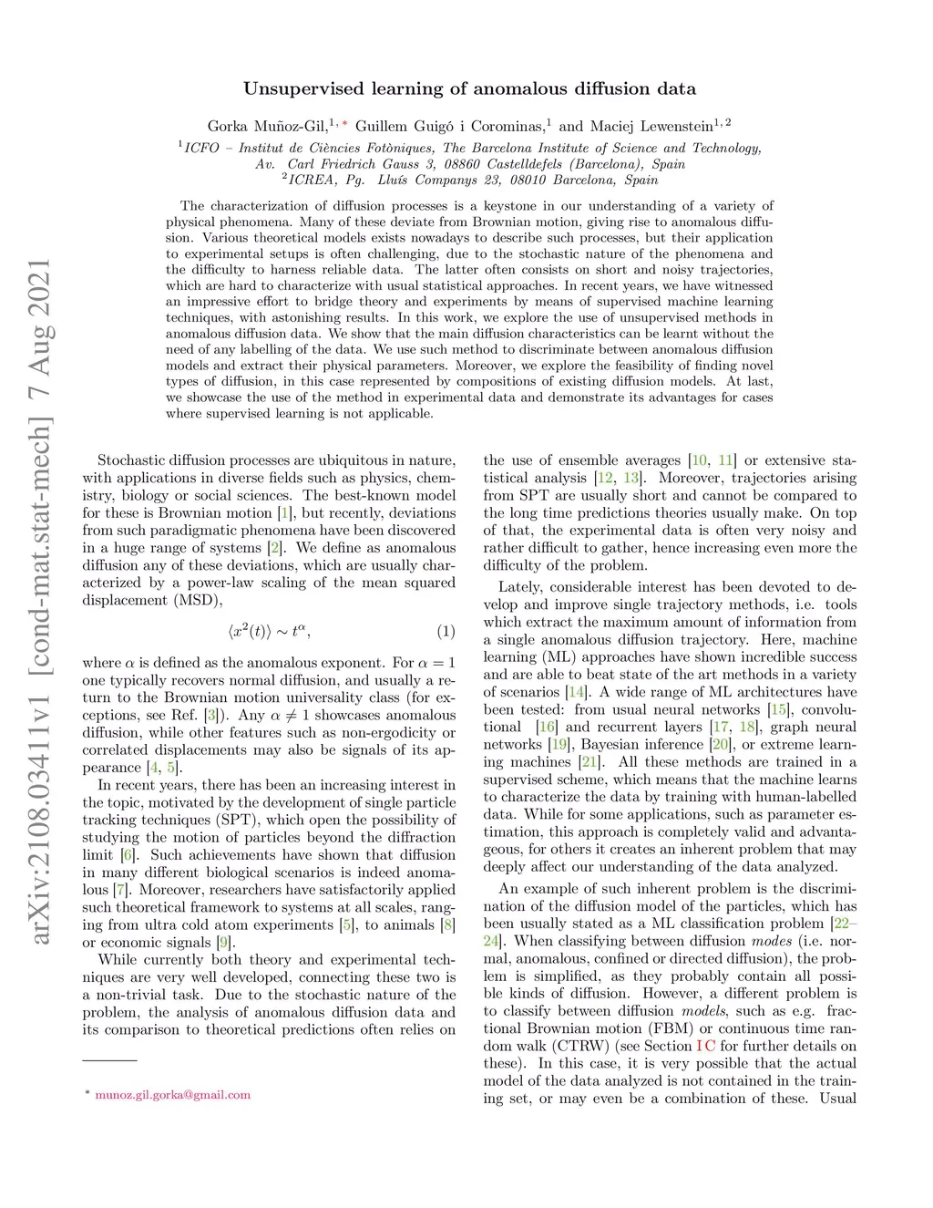 Unsupervised learning of anomalous diffusion data