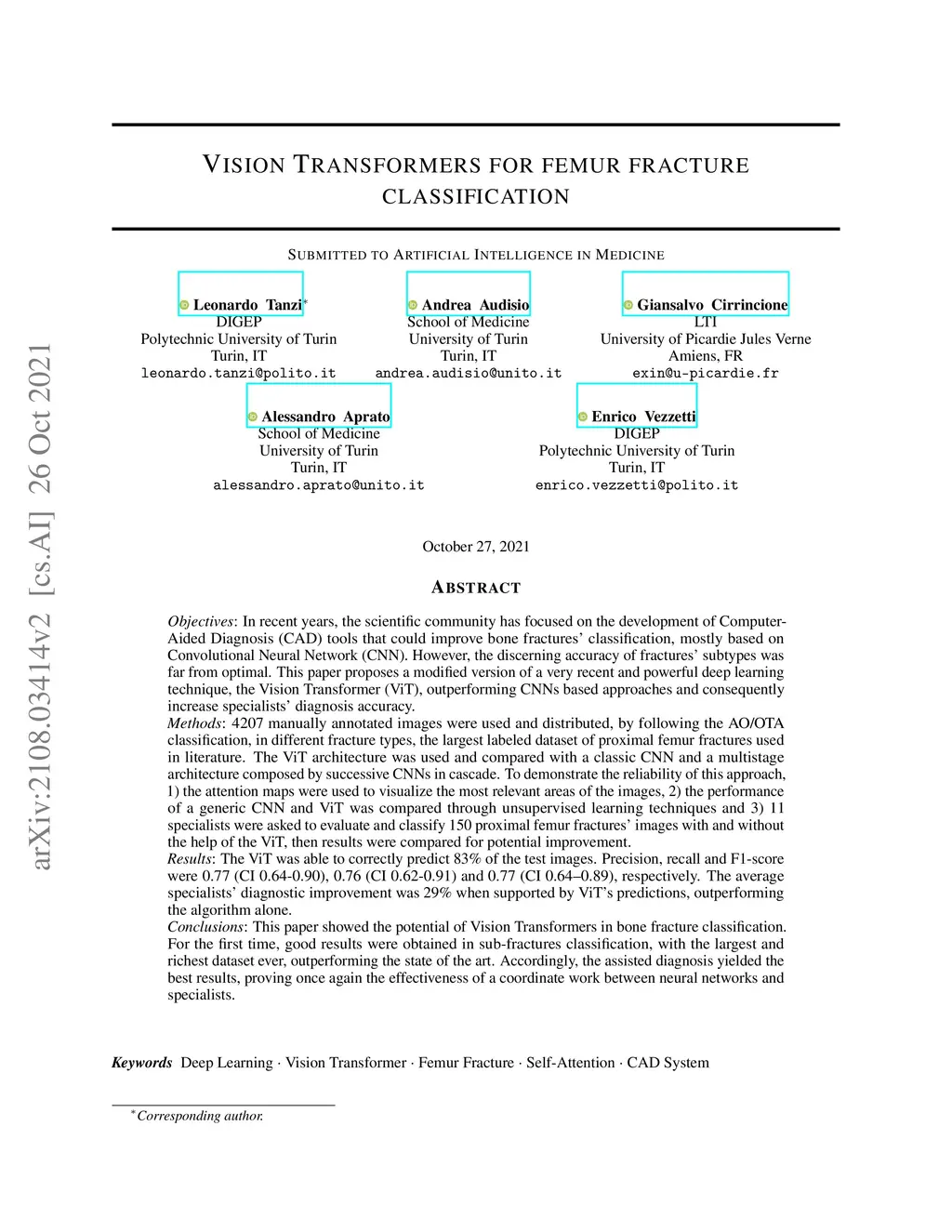 Vision Transformer for femur fracture classification