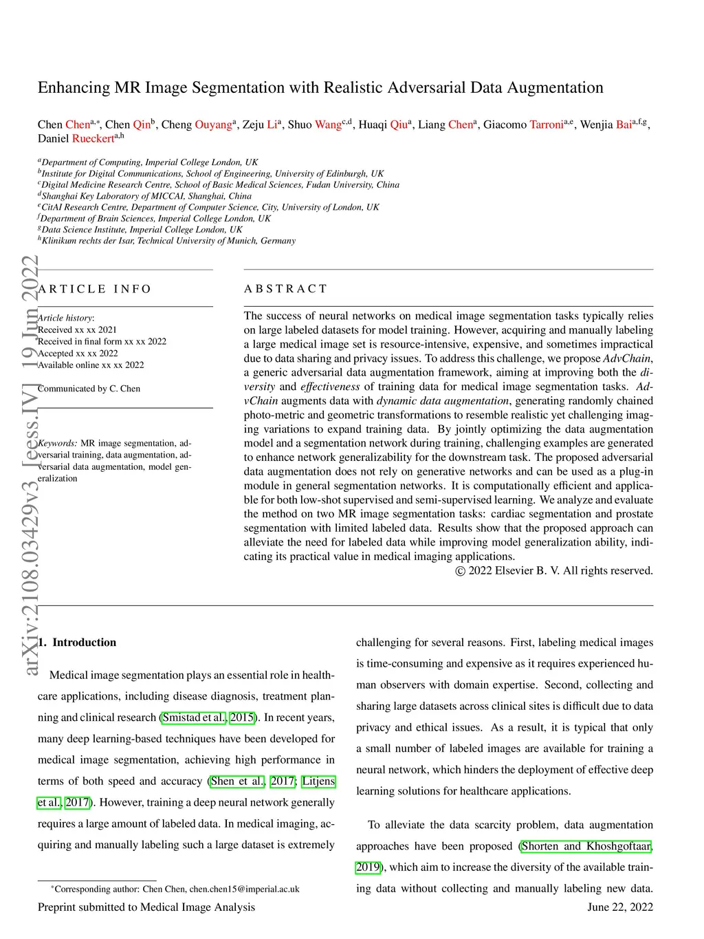 Enhancing MR Image Segmentation with Realistic Adversarial Data