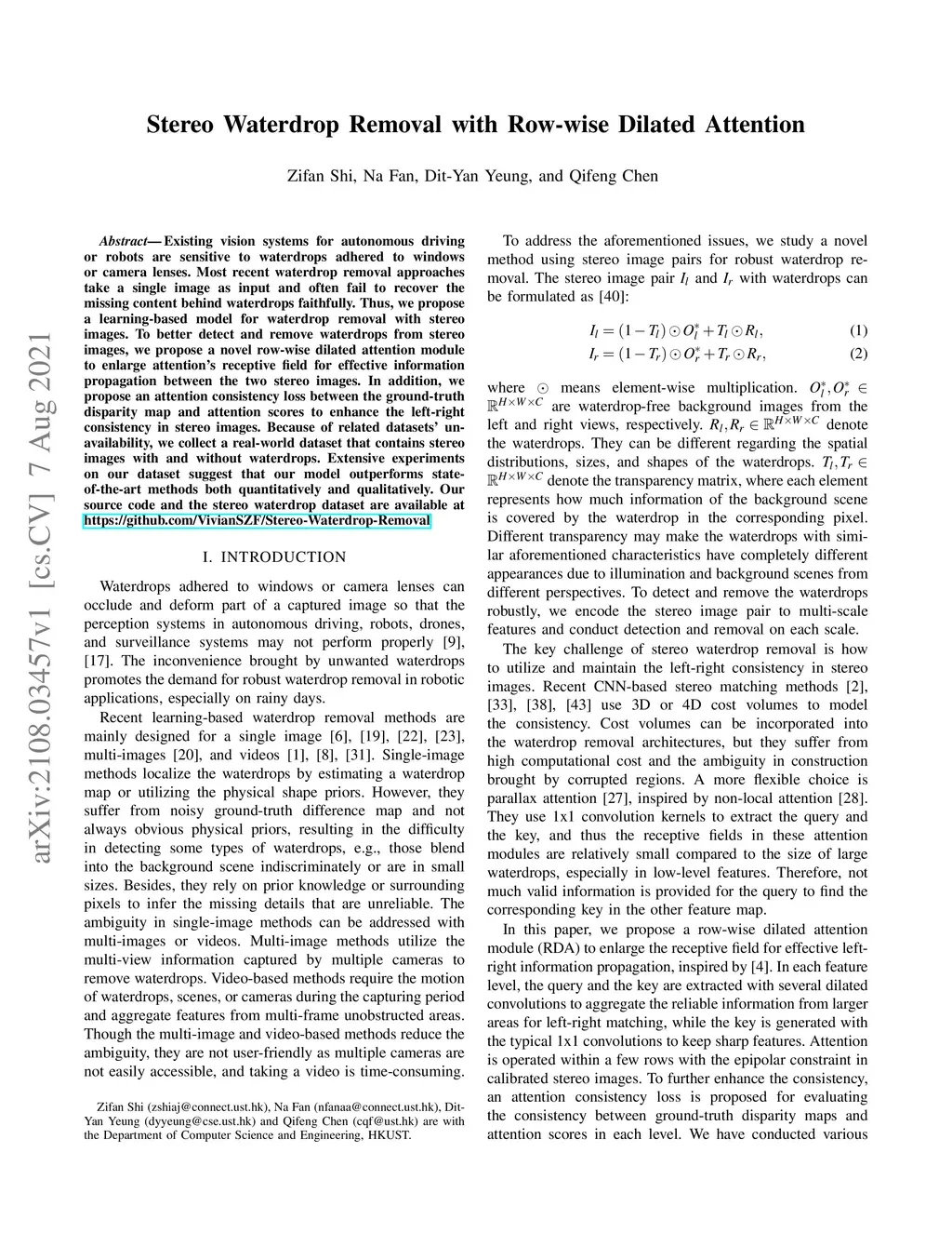 Stereo Waterdrop Removal with Row-wise Dilated Attention