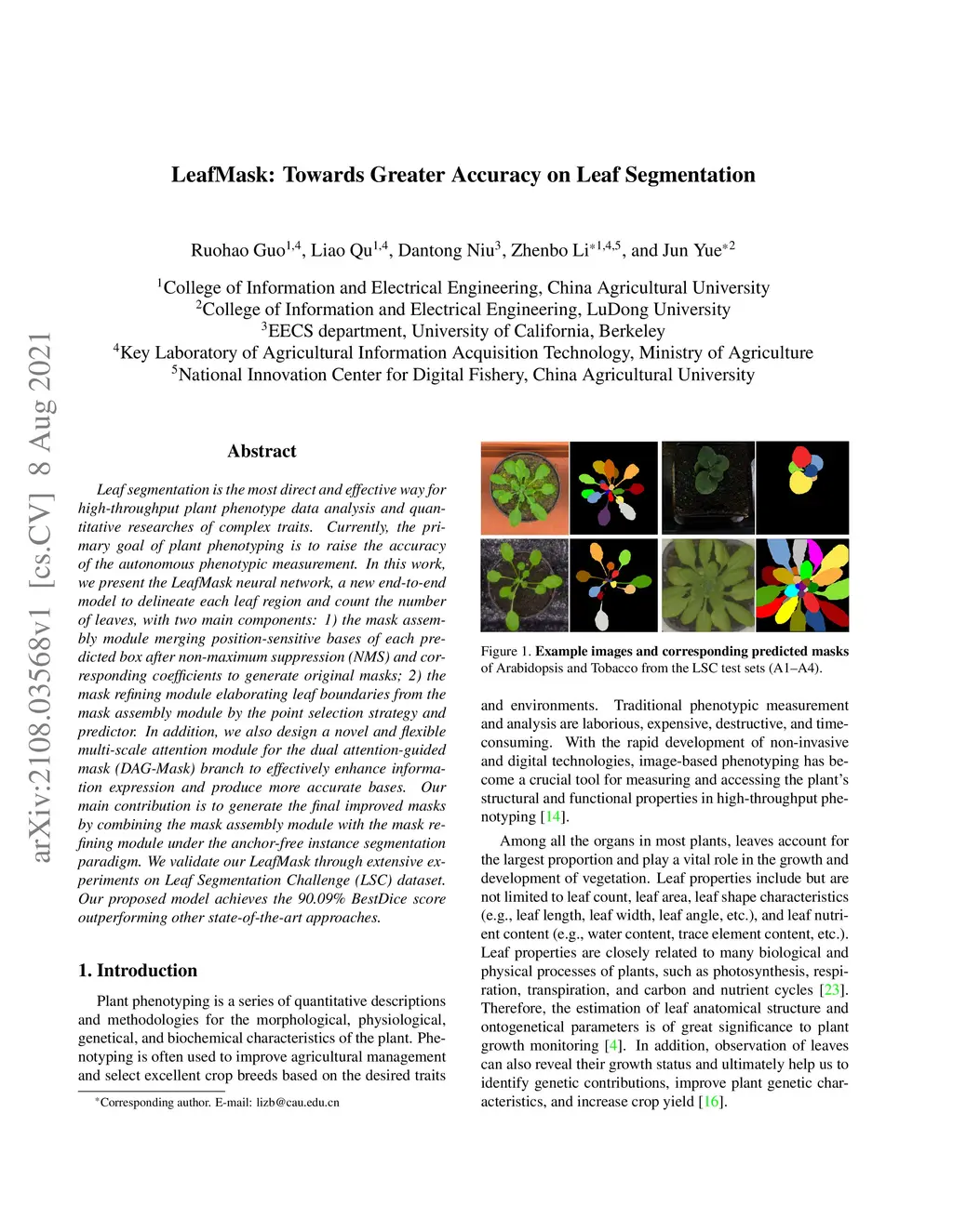 LeafMask: Towards Greater Accuracy on Leaf Segmentation