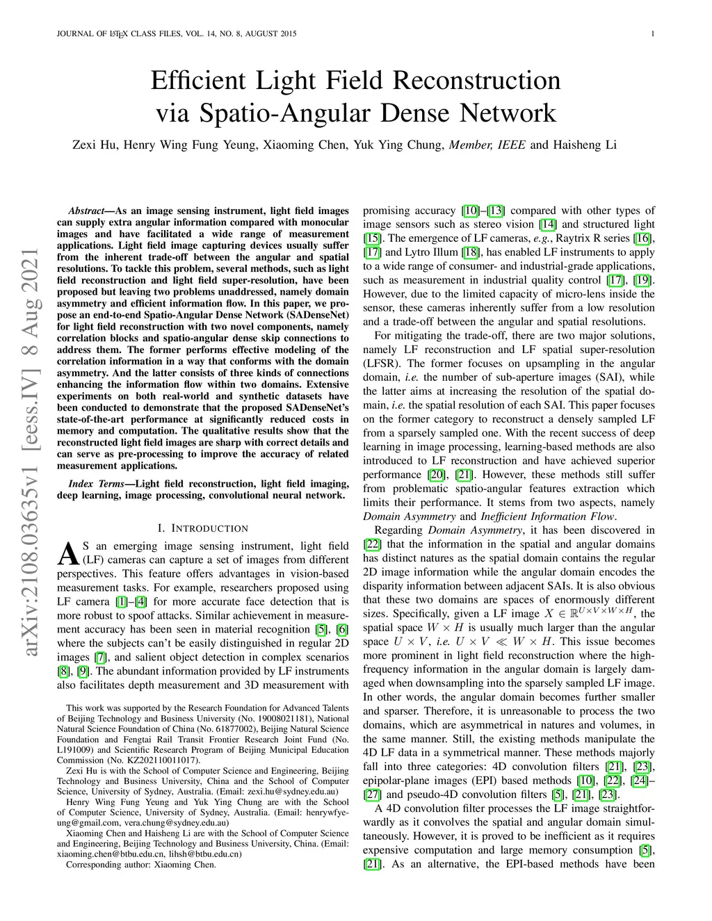 Efficient Light Field Reconstruction via Spatio-Angular Dense Network