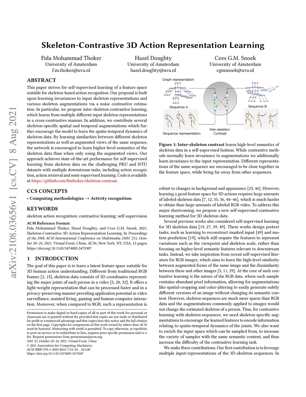 Skeleton-Contrastive 3D Action Representation Learning