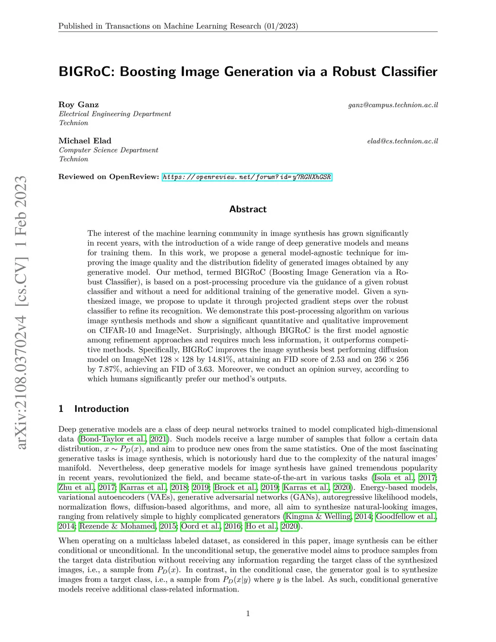 BIGRoC: Boosting Image Generation via a Robust Classifier