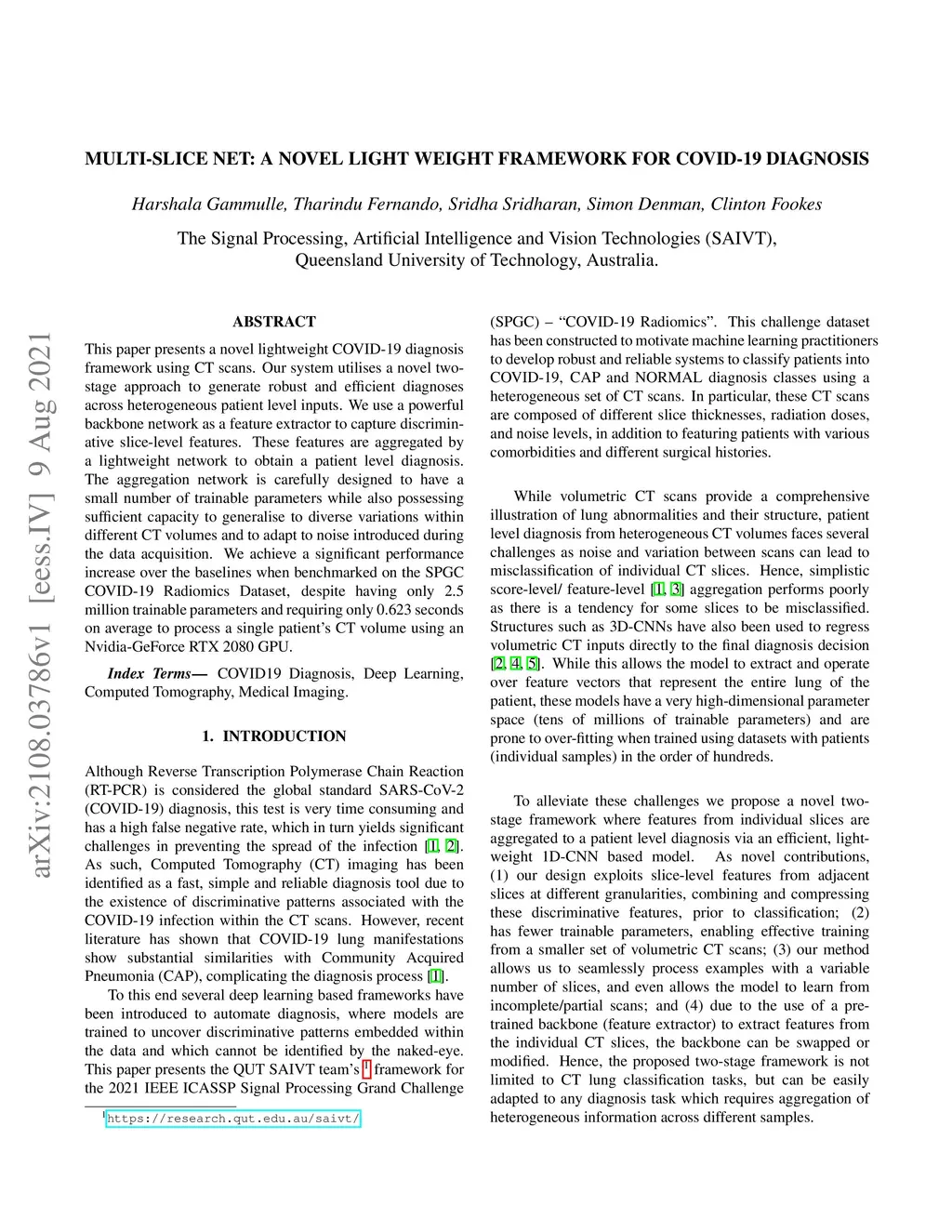 Multi-Slice Net: A novel light weight framework for COVID-19 Diagnosis