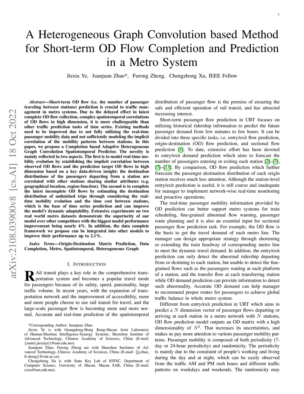 Short-term OD flow (i.e. the number of passenger traveling between stations) prediction is crucial to traffic management in metro systems. Due to the delayed effect in latest complete OD flow collection, complex spatiotemporal correlations of OD flows in high dimension, it is more challengeable than other traffic prediction tasks of time series. Existing methods need to be improved due to not fully utilizing the real-time passenger mobility data and not sufficiently modeling the implicit correlation of the mobility patterns between stations. In this paper, we propose a Completion based Adaptive Heterogeneous Graph Convolution Spatiotemporal Predictor. The novelty is mainly reflected in two aspects. The first is to model real-time mobility evolution by establishing the implicit correlation between observed OD flows and the prediction target OD flows in high dimension based on a key data-driven insight: the destination distributions of the passengers departing from a station are correlated with other stations sharing similar attributes (e.g. geographical location, region function). The second is to complete the latest incomplete OD flows by estimating the destination distribution of unfinished trips through considering the real-time mobility evolution and the time cost between stations, which is the base of time series prediction and can improve the model's dynamic adaptability. Extensive experiments on two real world metro datasets demonstrate the superiority of our model over other competitors with the biggest model performance improvement being nearly 4\%. In addition, the data complete framework we propose can be integrated into other models to improve their performance up to 2.1\%.