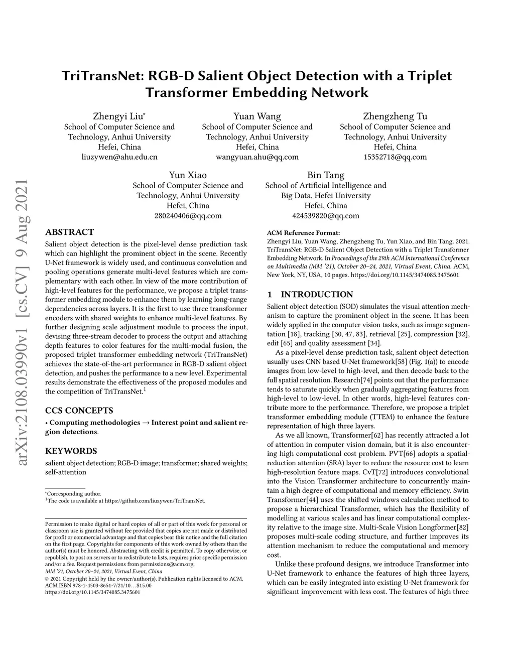 TriTransNet: RGB-D Salient Object Detection with a Triplet Transformer