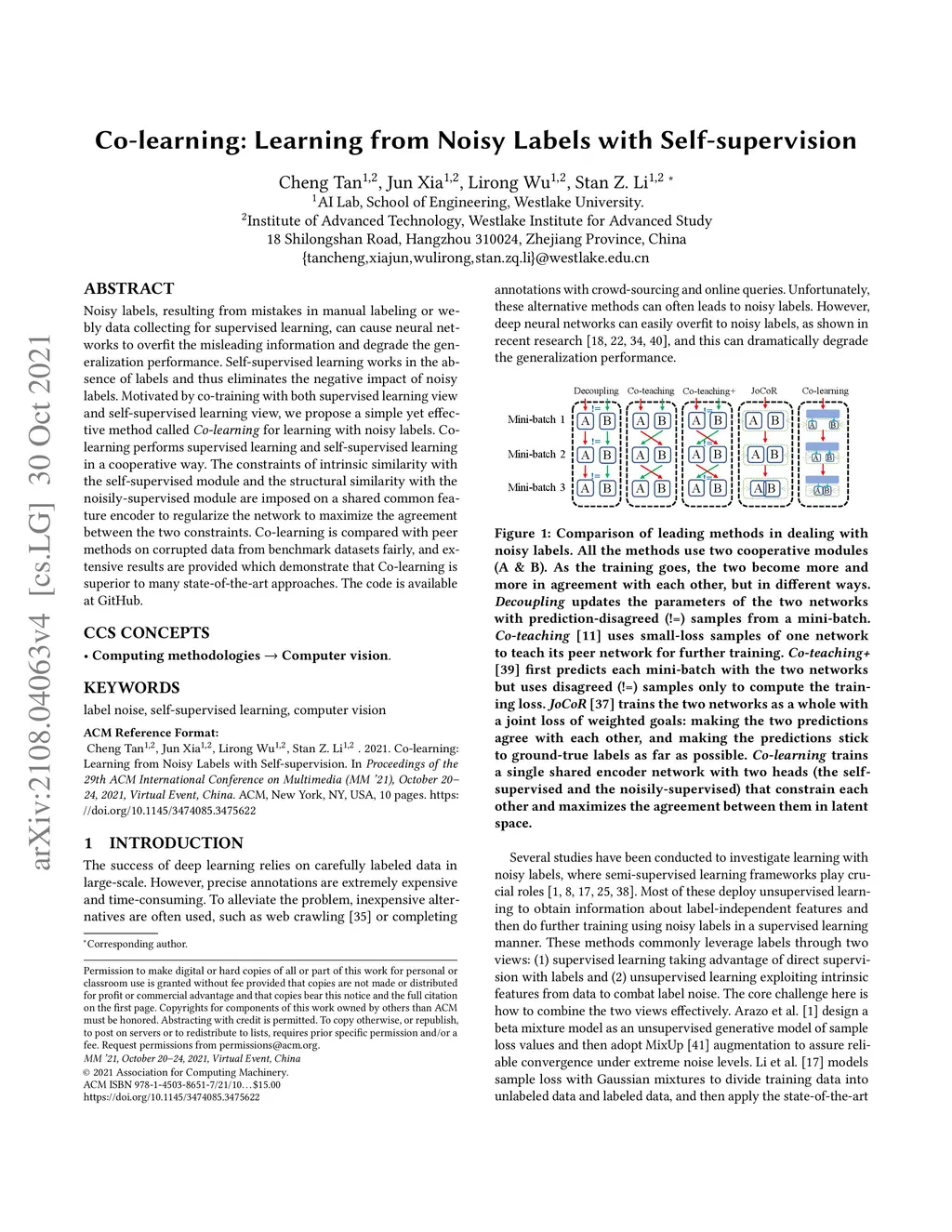 Co-learning: Learning from Noisy Labels with Self-supervision