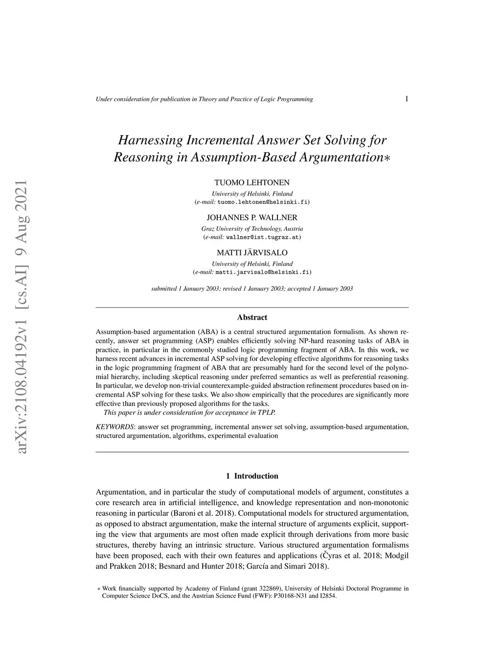 Assumption-Based Argumentation