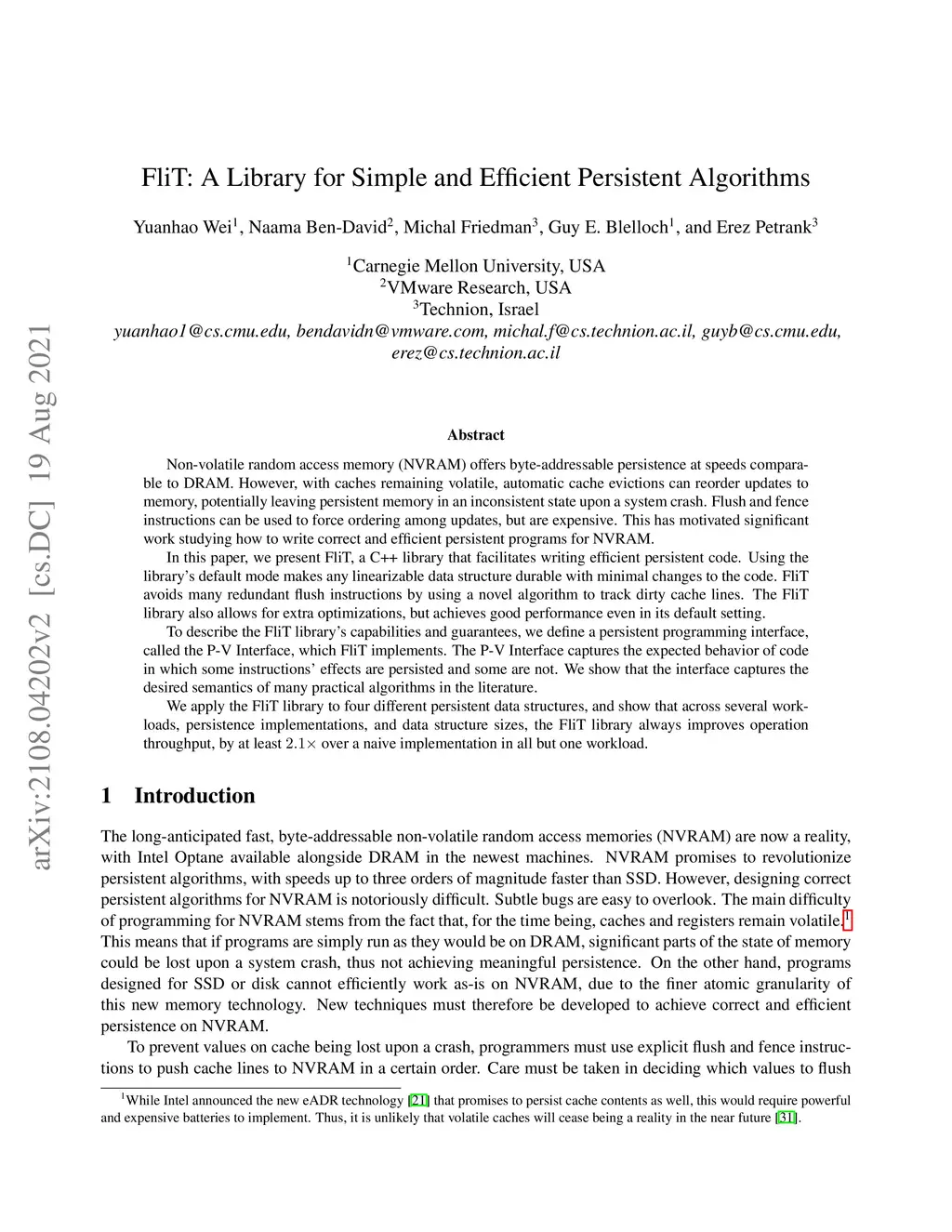 Non-volatile random access memory (NVRAM) offers byte-addressable persistence at speeds comparable to DRAM. However, with caches remaining volatile, automatic cache evictions can reorder updates to memory, potentially leaving persistent memory in an inconsistent state upon a system crash. Flush and fence instructions can be used to force ordering among updates, but are expensive. This has motivated significant work studying how to write correct and efficient persistent programs for NVRAM. In this paper, we present FliT, a C++ library that facilitates writing efficient persistent code. Using the library's default mode makes any linearizable data structure durable with minimal changes to the code. FliT avoids many redundant flush instructions by using a novel algorithm to track dirty cache lines. The FliT library also allows for extra optimizations, but achieves good performance even in its default setting. To describe the FliT library's capabilities and guarantees, we define a persistent programming interface, called the P-V Interface, which FliT implements. The P-V Interface captures the expected behavior of code in which some instructions' effects are persisted and some are not. We show that the interface captures the desired semantics of many practical algorithms in the literature. We apply the FliT library to four different persistent data structures, and show that across several workloads, persistence implementations, and data structure sizes, the FliT library always improves operation throughput, by at least over a naive implementation in all but one workload.