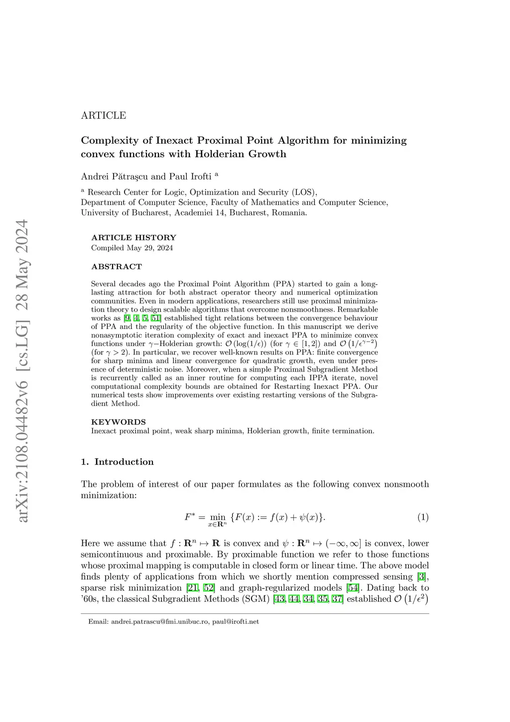 Complexity of Inexact Proximal Point Algorithm for minimizing convex