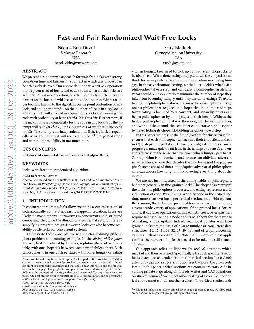 We present a randomized approach for wait-free locks with strong bounds on time and fairness in a context in which any process can be arbitrarily delayed. Our approach supports a tryLock operation that is given a set of locks, and code to run when all the locks are acquired. A tryLock operation, or attempt, may fail if there is contention on the locks, in which case the code is not run. Given an upper bound known to the algorithm on the point contention of any lock, and an upper bound on the number of locks in a tryLock's set, a tryLock will succeed in acquiring its locks and running the code with probability at least . It is thus fair. Furthermore, if the maximum step complexity for the code in any lock is , the attempt will take steps, regardless of whether it succeeds or fails. The attempts are independent, thus if the tryLock is repeatedly retried on failure, it will succeed in expected steps, and with high probability in not much more.