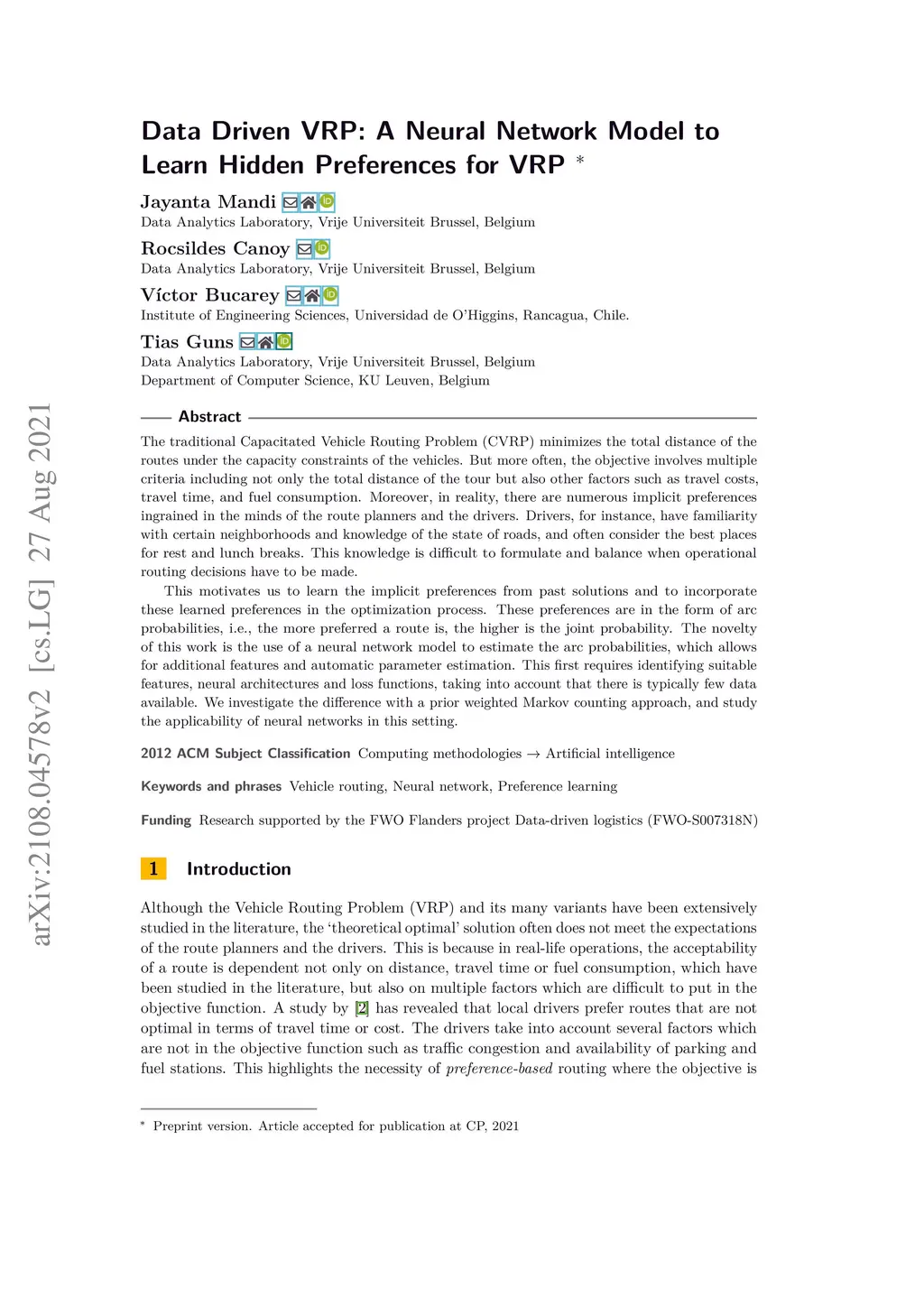Data Driven VRP: A Neural Network Model to Learn Hidden Preferences for