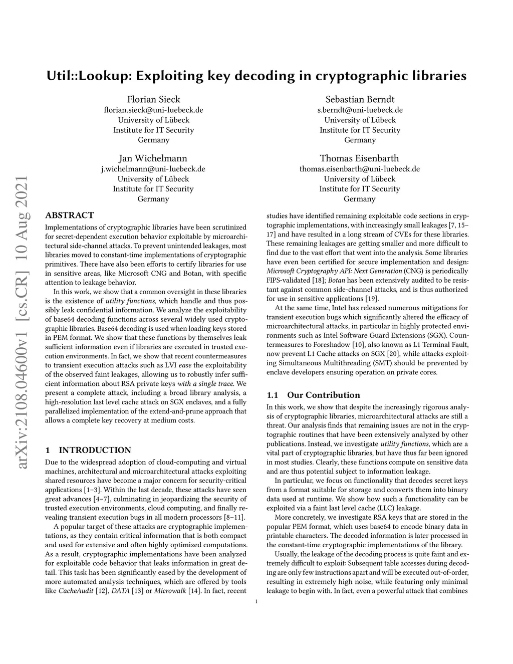 Util::Lookup: Exploiting key decoding in cryptographic libraries