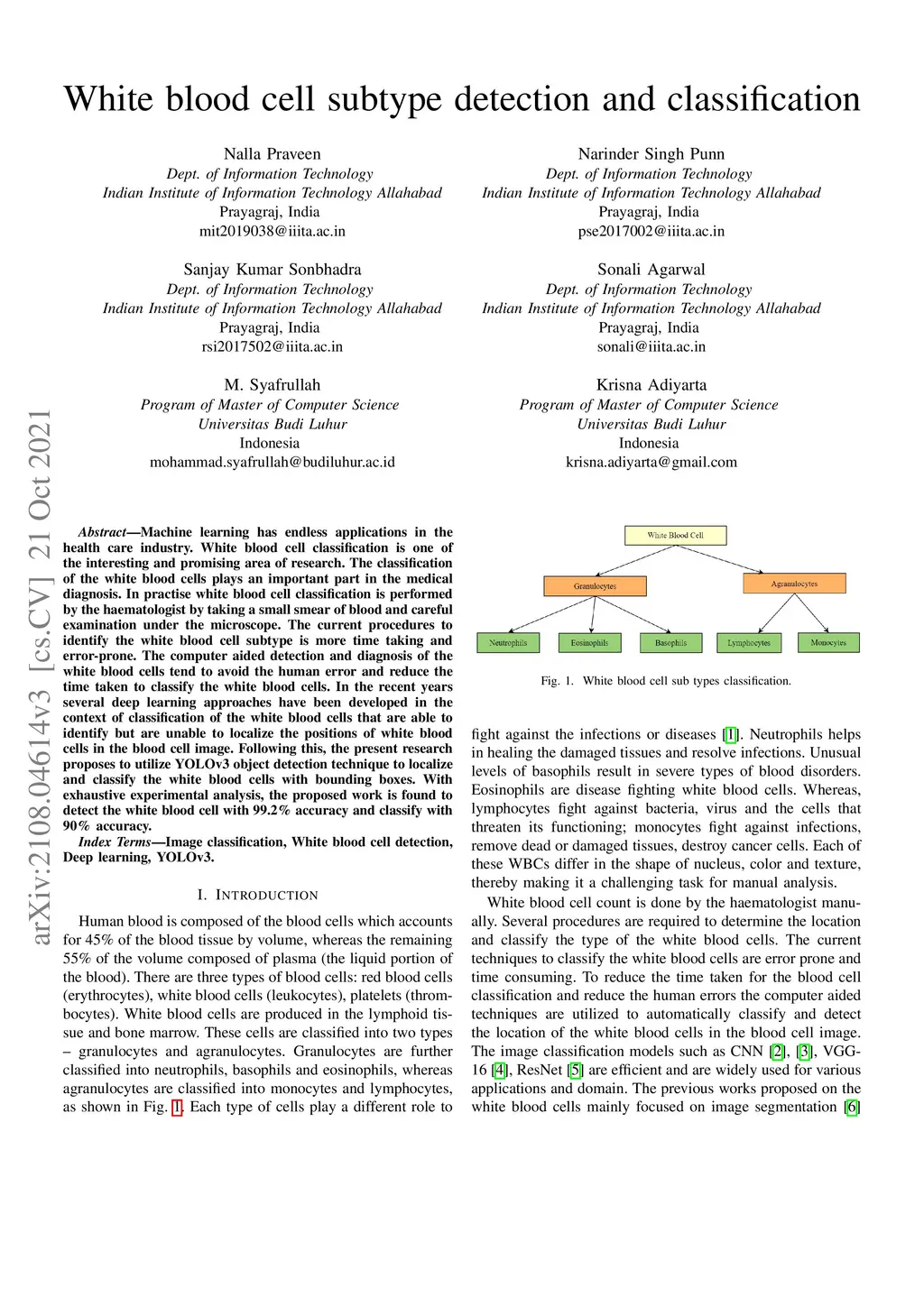 White blood cell subtype detection and classification