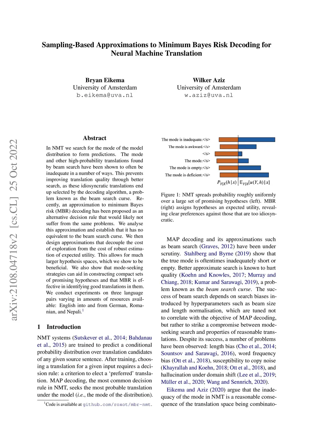 In NMT we search for the mode of the model distribution to form predictions. The mode and other high-probability translations found by beam search have been shown to often be inadequate in a number of ways. This prevents improving translation quality through better search, as these idiosyncratic translations end up selected by the decoding algorithm, a problem known as the beam search curse. Recently, an approximation to minimum Bayes risk (MBR) decoding has been proposed as an alternative decision rule that would likely not suffer from the same problems. We analyse this approximation and establish that it has no equivalent to the beam search curse. We then design approximations that decouple the cost of exploration from the cost of robust estimation of expected utility. This allows for much larger hypothesis spaces, which we show to be beneficial. We also show that mode-seeking strategies can aid in constructing compact sets of promising hypotheses and that MBR is effective in identifying good translations in them. We conduct experiments on three language pairs varying in amounts of resources available: English into and from German, Romanian, and Nepali.
