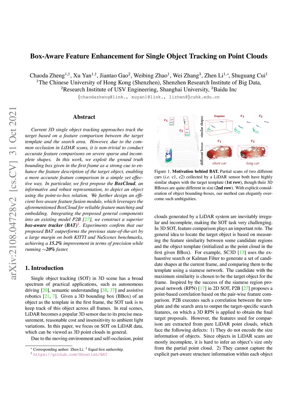 Box-Aware Feature Enhancement for Single Object Tracking on Point Clouds