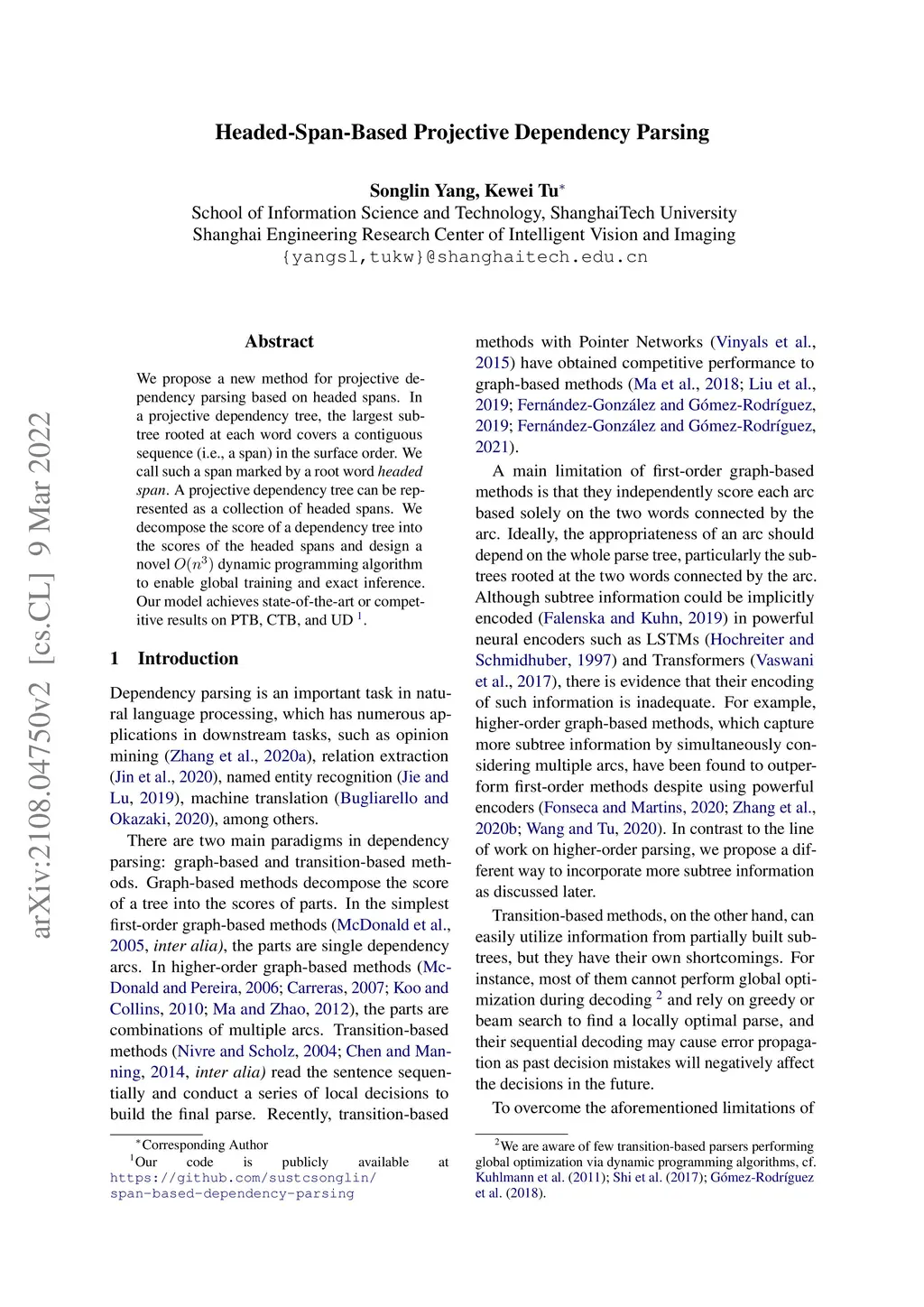 Headed-Span-Based Projective Dependency Parsing
