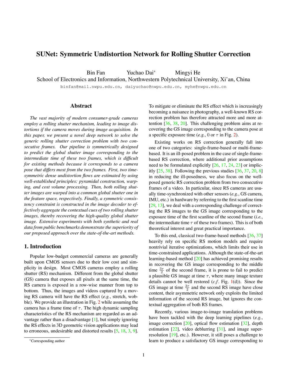 SUNet: Symmetric Undistortion Network for Rolling Shutter Correction