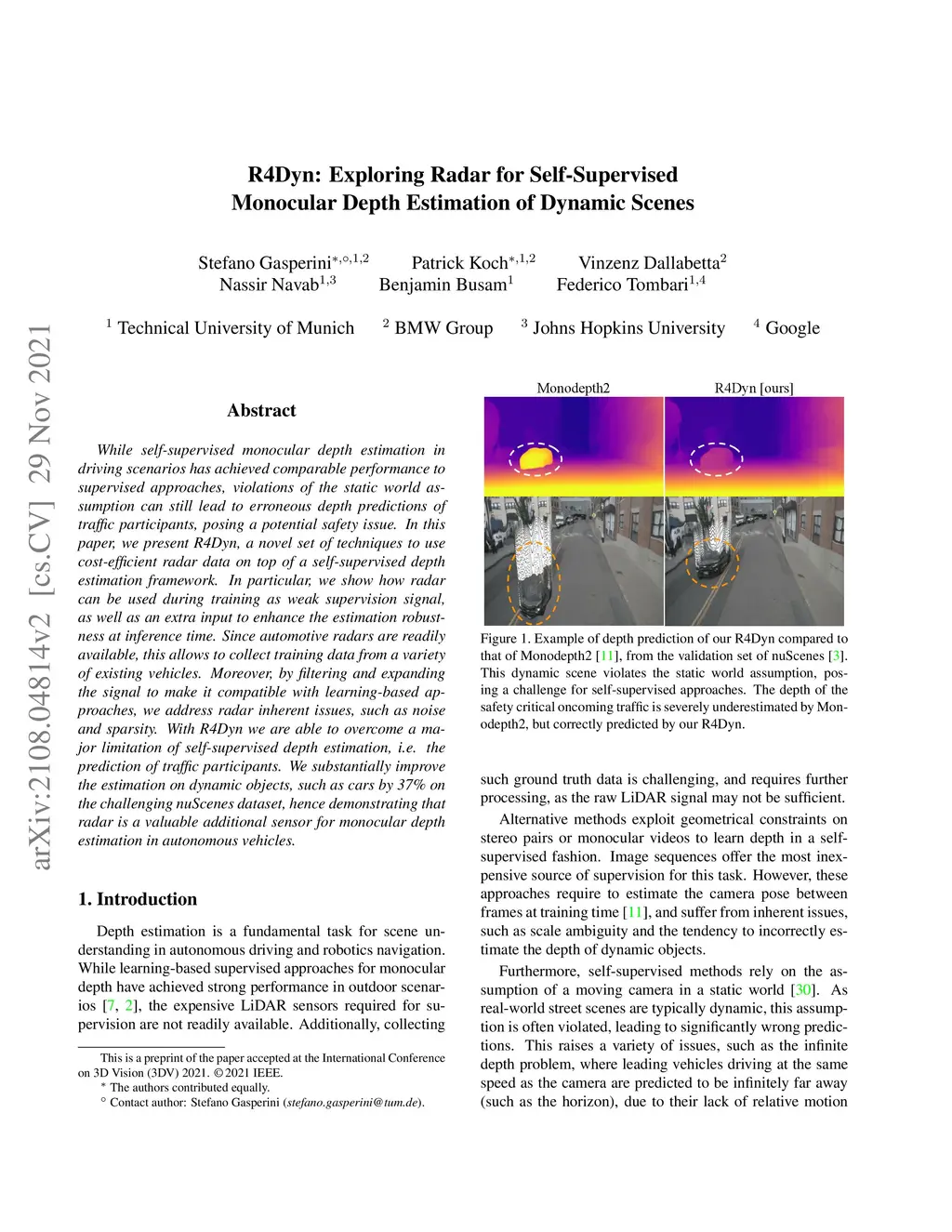 R4Dyn: Exploring Radar for Self-Supervised Monocular Depth Estimation of