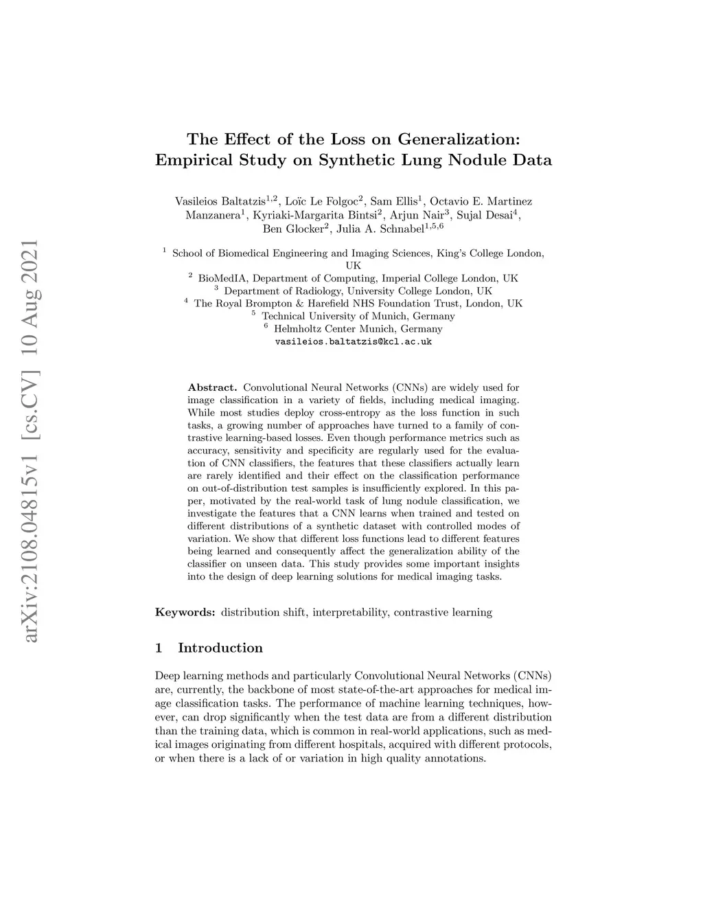 Convolutional Neural Networks (CNNs) are widely used for image classification in a variety of fields, including medical imaging. While most studies deploy cross-entropy as the loss function in such tasks, a growing number of approaches have turned to a family of contrastive learning-based losses. Even though performance metrics such as accuracy, sensitivity and specificity are regularly used for the evaluation of CNN classifiers, the features that these classifiers actually learn are rarely identified and their effect on the classification performance on out-of-distribution test samples is insufficiently explored. In this paper, motivated by the real-world task of lung nodule classification, we investigate the features that a CNN learns when trained and tested on different distributions of a synthetic dataset with controlled modes of variation. We show that different loss functions lead to different features being learned and consequently affect the generalization ability of the classifier on unseen data. This study provides some important insights into the design of deep learning solutions for medical imaging tasks.
