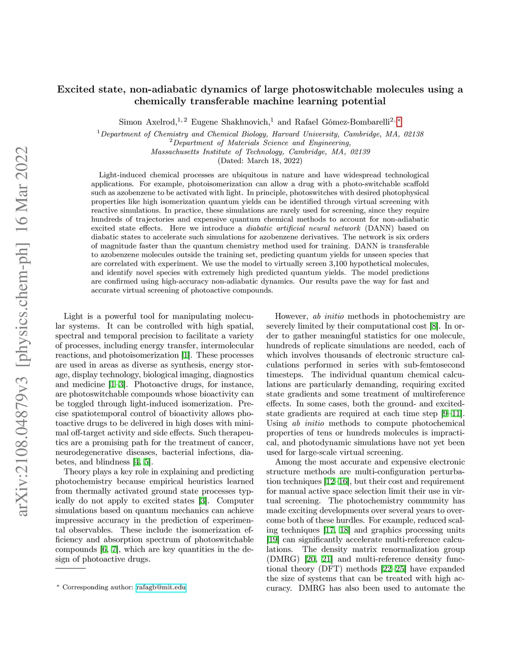 Light-induced chemical processes are ubiquitous in nature and have widespread technological applications. For example, photoisomerization can allow a drug with a photo-switchable scaffold such as azobenzene to be activated with light. In principle, photoswitches with desired photophysical properties like high isomerization quantum yields can be identified through virtual screening with reactive simulations. In practice, these simulations are rarely used for screening, since they require hundreds of trajectories and expensive quantum chemical methods to account for non-adiabatic excited state effects. Here we introduce a diabatic artificial neural network (DANN) based on diabatic states to accelerate such simulations for azobenzene derivatives. The network is six orders of magnitude faster than the quantum chemistry method used for training. DANN is transferable to azobenzene molecules outside the training set, predicting quantum yields for unseen species that are correlated with experiment. We use the model to virtually screen 3,100 hypothetical molecules, and identify novel species with extremely high predicted quantum yields. The model predictions are confirmed using high accuracy non-adiabatic dynamics. Our results pave the way for fast and accurate virtual screening of photoactive compounds.