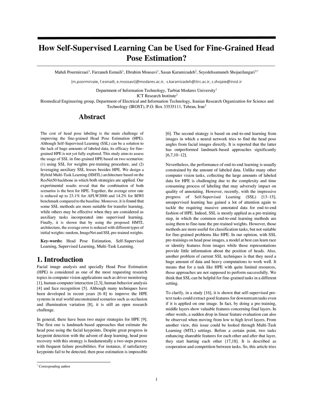 How Self-Supervised Learning Can be Used for Fine-Grained Head Pose