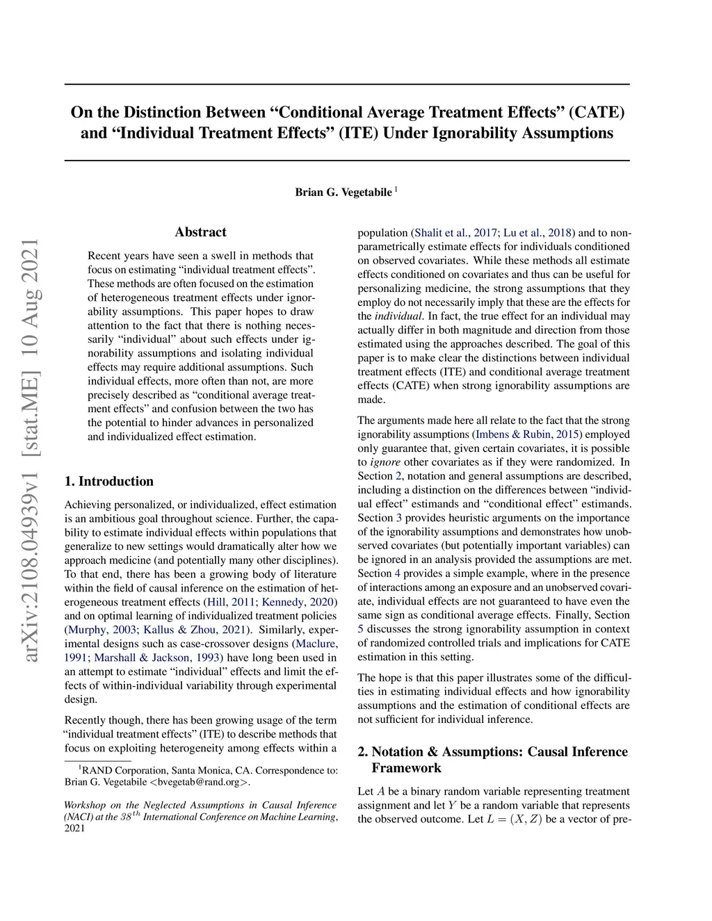 (CATE) and "Individual Treatment Effects" (ITE) Under Ignorability