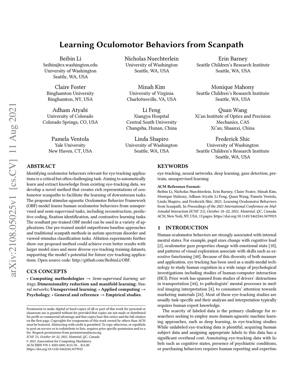 Identifying oculomotor behaviors relevant for eye-tracking applications is a critical but often challenging task. Aiming to automatically learn and extract knowledge from existing eye-tracking data, we develop a novel method that creates rich representations of oculomotor scanpaths to facilitate the learning of downstream tasks. The proposed stimulus-agnostic Oculomotor Behavior Framework (OBF) model learns human oculomotor behaviors from unsupervised and semi-supervised tasks, including reconstruction, predictive coding, fixation identification, and contrastive learning tasks. The resultant pre-trained OBF model can be used in a variety of applications. Our pre-trained model outperforms baseline approaches and traditional scanpath methods in autism spectrum disorder and viewed-stimulus classification tasks. Ablation experiments further show our proposed method could achieve even better results with larger model sizes and more diverse eye-tracking training datasets, supporting the model's potential for future eye-tracking applications. Open source code: http://github.com/BeibinLi/OBF.