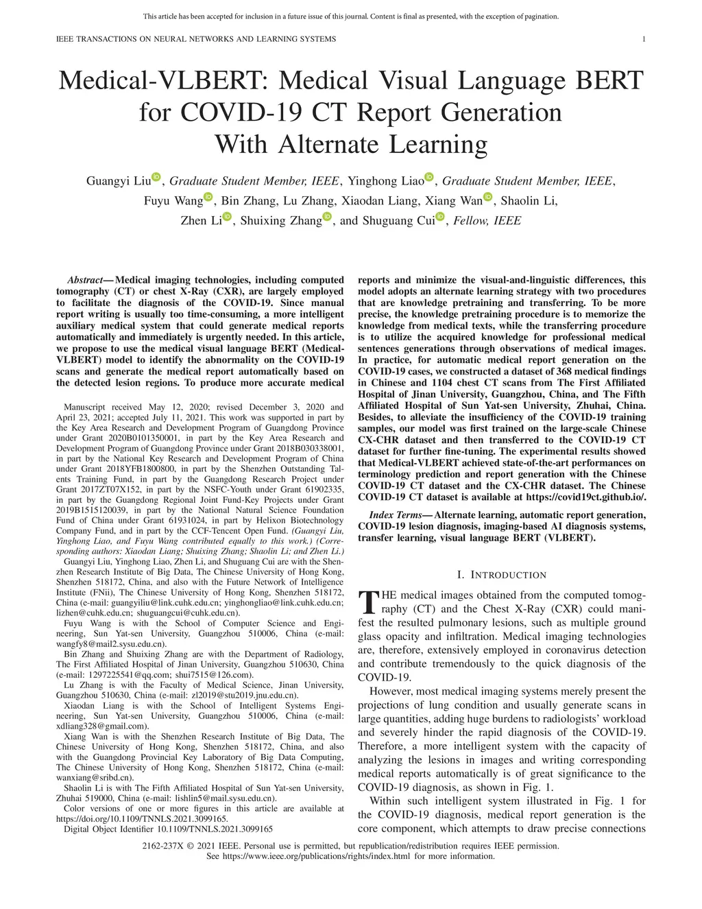Medical-VLBERT: Medical Visual Language BERT for COVID-19 CT Report