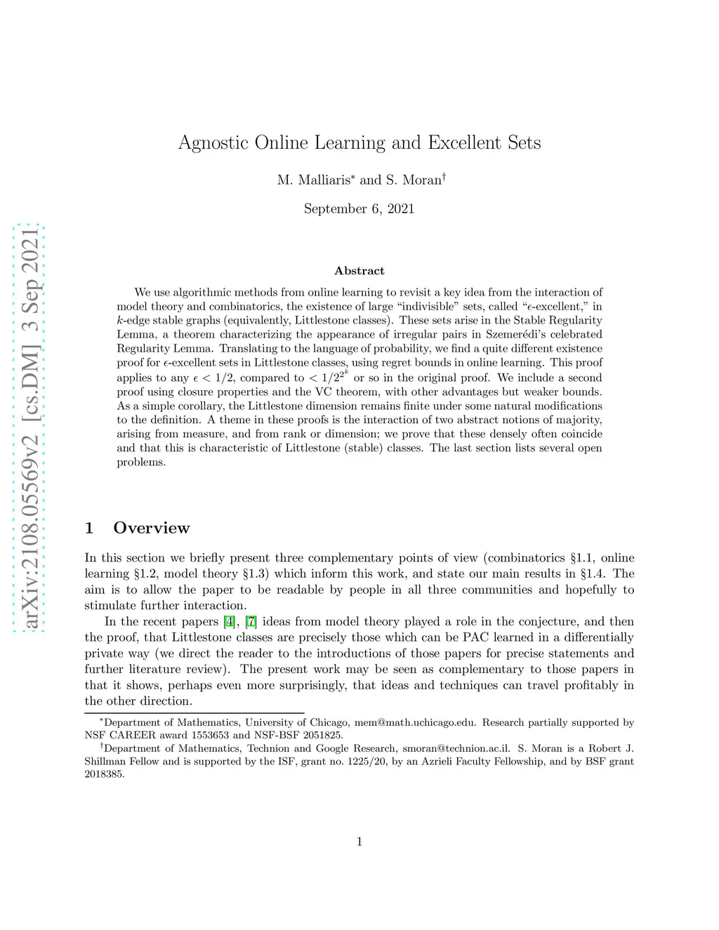 We use algorithmic methods from online learning to explore some important objects at the intersection of model theory and combinatorics, and find natural ways that algorithmic methods can detect and explain (and improve our understanding of) stable structure in the sense of model theory. The main theorem deals with existence of -excellent sets (which are key to the Stable Regularity Lemma, a theorem characterizing the appearance of irregular pairs in Szemerédi's celebrated Regularity Lemma). We prove that -excellent sets exist for any in -edge stable graphs in the sense of model theory (equivalently, Littlestone classes); earlier proofs had given this only for or so. We give two proofs: the first uses regret bounds from online learning, the second uses Boolean closure properties of Littlestone classes and sampling. We also give a version of the dynamic Sauer-Shelah-Perles lemma appropriate to this setting, related to definability of types. We conclude by characterizing stable/Littlestone classes as those supporting a certain abstract notion of majority: the proof shows that the two distinct, natural notions of majority, arising from measure and from dimension, densely often coincide.
