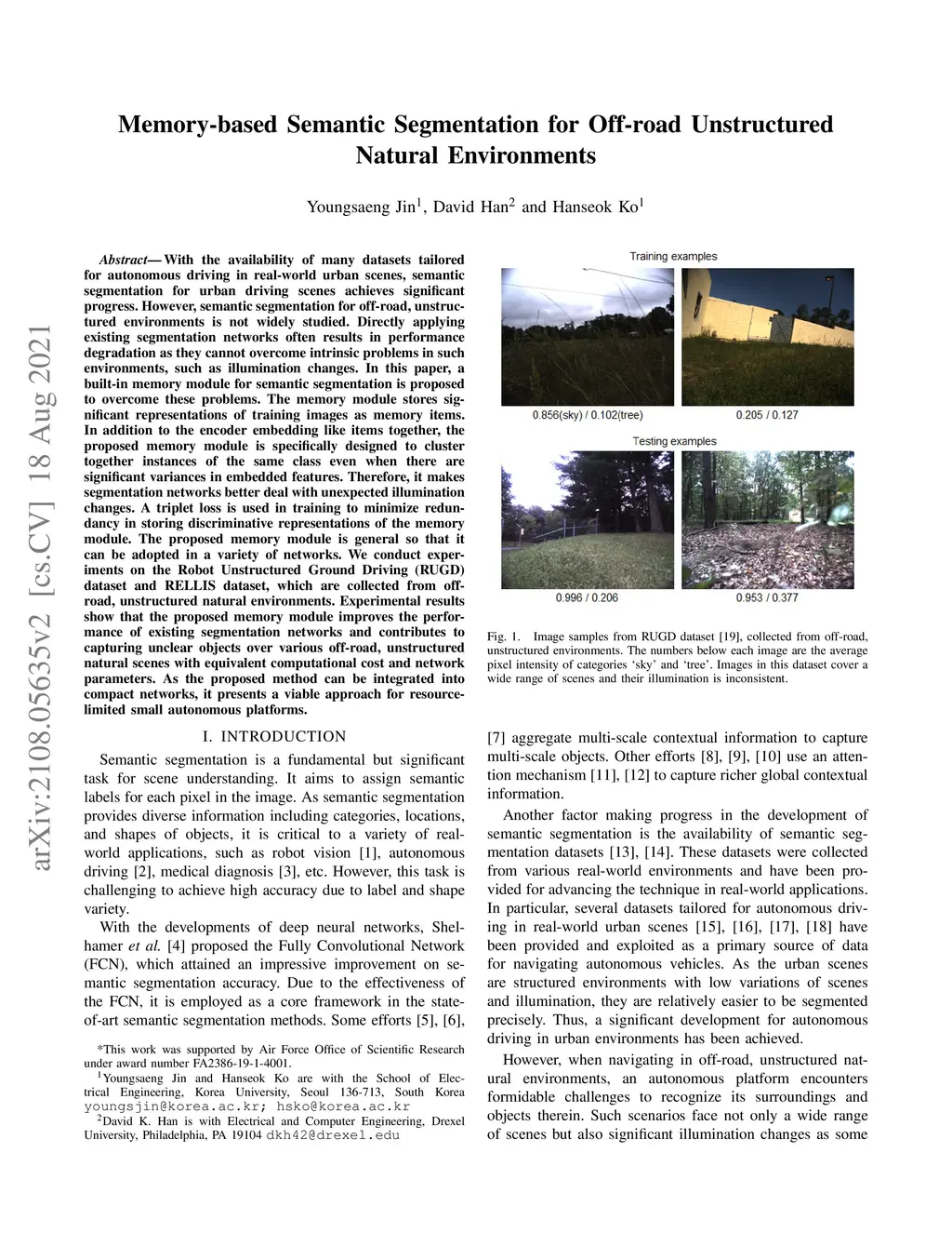 Memory-based Semantic Segmentation for Off-road Unstructured Natural