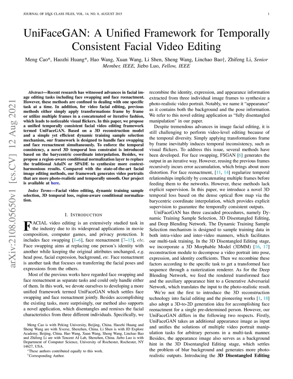 UniFaceGAN: A Unified Framework for Temporally Consistent Facial Video