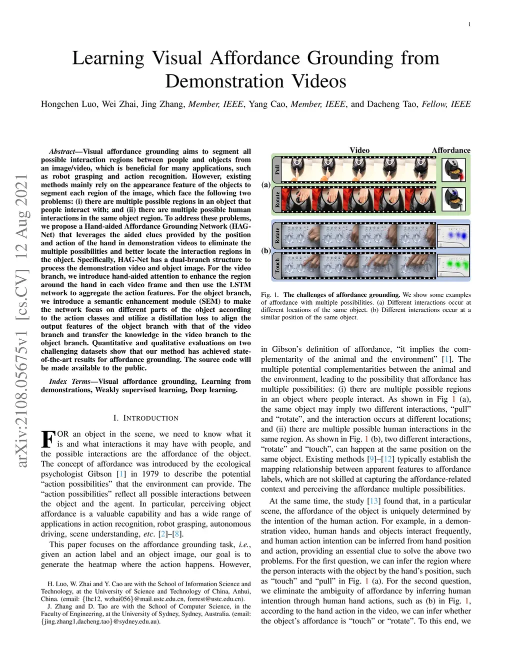 Learning Visual Affordance Grounding from Demonstration Videos