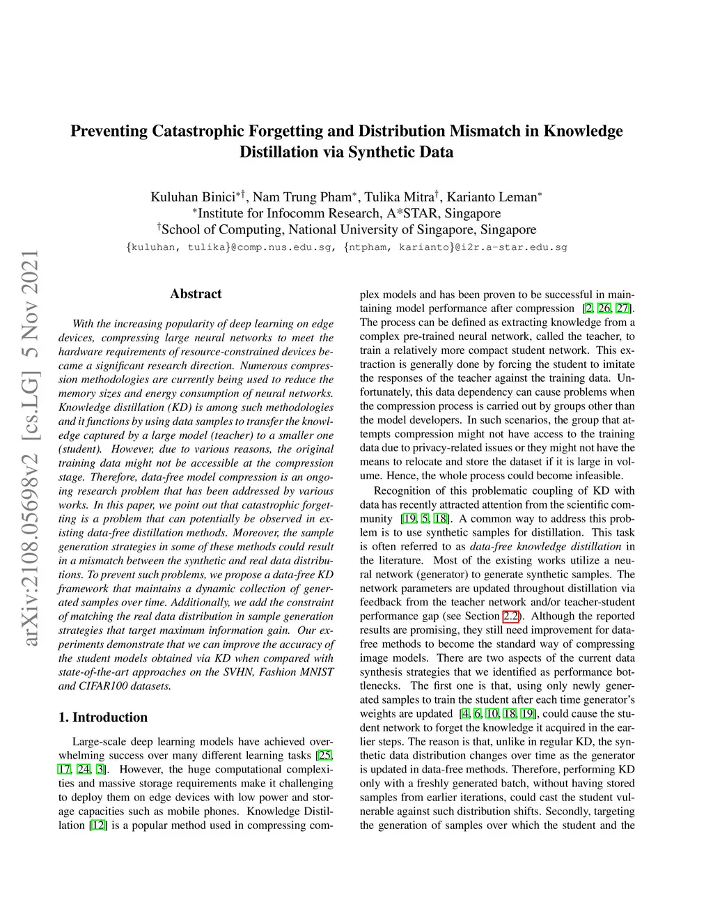 Knowledge Distillation via Synthetic Data