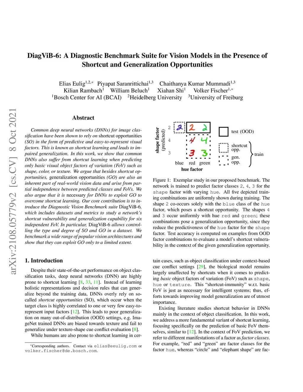 Common deep neural networks (DNNs) for image classification have been shown to rely on shortcut opportunities (SO) in the form of predictive and easy-to-represent visual factors. This is known as shortcut learning and leads to impaired generalization. In this work, we show that common DNNs also suffer from shortcut learning when predicting only basic visual object factors of variation (FoV) such as shape, color, or texture. We argue that besides shortcut opportunities, generalization opportunities (GO) are also an inherent part of real-world vision data and arise from partial independence between predicted classes and FoVs. We also argue that it is necessary for DNNs to exploit GO to overcome shortcut learning. Our core contribution is to introduce the Diagnostic Vision Benchmark suite DiagViB-6, which includes datasets and metrics to study a network's shortcut vulnerability and generalization capability for six independent FoV. In particular, DiagViB-6 allows controlling the type and degree of SO and GO in a dataset. We benchmark a wide range of popular vision architectures and show that they can exploit GO only to a limited extent.