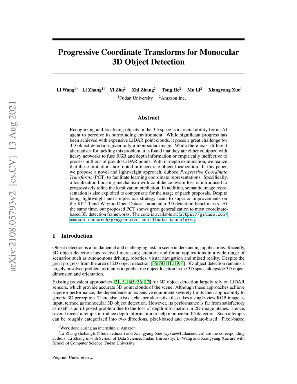 Progressive Coordinate Transforms for Monocular 3D Object Detection