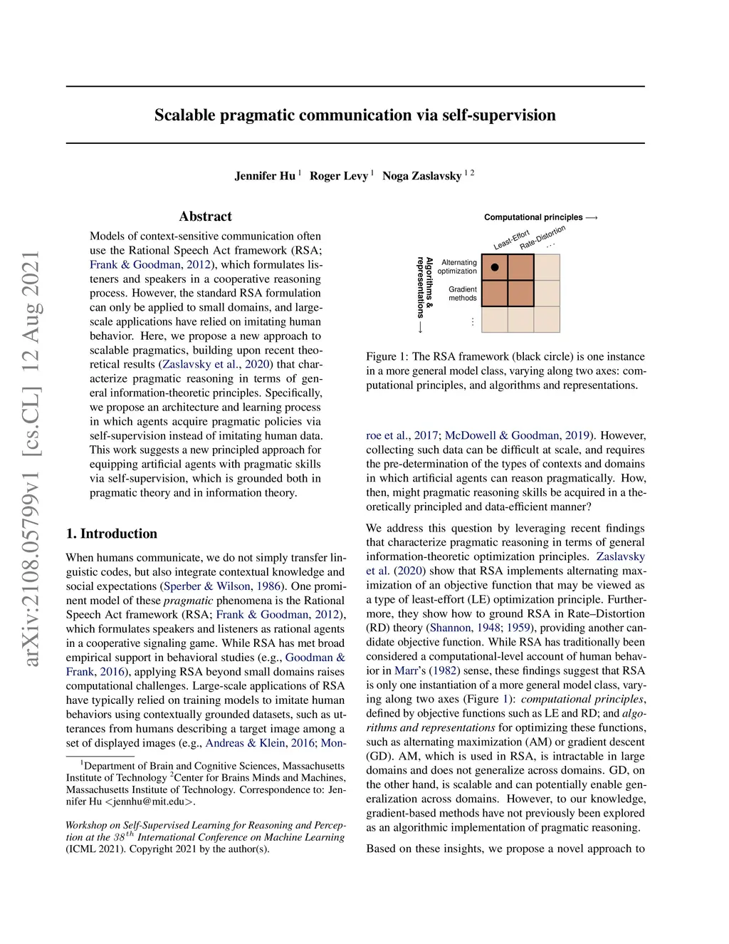 Scalable pragmatic communication via self-supervision