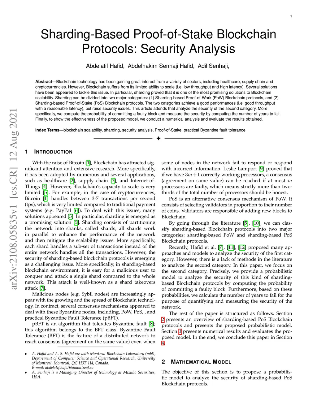 Blockchain technology has been gaining great interest from a variety of sectors, including healthcare, supply chain and cryptocurrencies. However, Blockchain suffers from its limited ability to scale (i.e. low throughput and high latency). Several solutions have been appeared to tackle this issue. In particular, sharding proved that it is one of the most promising solutions to Blockchain scalability. Sharding can be divided into two major categories: (1) Sharding-based Proof-of-Work (PoW) Blockchain protocols, and (2) Sharding-based Proof-of-Stake (PoS) Blockchain protocols. The two categories achieve a good performances (i.e. good throughput with a reasonable latency), but raise security issues. This article attends that analyze the security of the second category. More specifically, we compute the probability of committing a faulty block and measure the security by computing the number of years to fail. Finally, to show the effectiveness of the proposed model, we conduct a numerical analysis and evaluate the results obtained.
