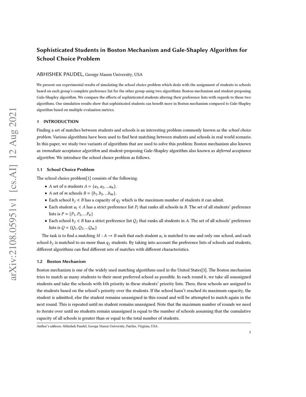We present our experimental results of simulating the school choice problem which deals with the assignment of students to schools based on each group's complete preference list for the other group using two algorithms: Boston mechanism and student-proposing Gale-Shapley algorithm. We compare the effects of sophisticated students altering their preference lists with regards to these two algorithms. Our simulation results show that sophisticated students can benefit more in Boston mechanism compared to Gale-Shapley algorithm based on multiple evaluation metrics.