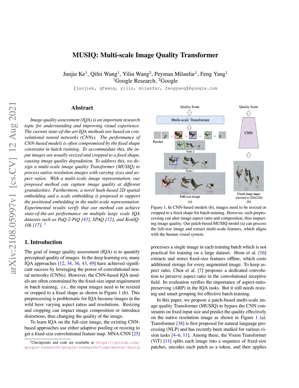 MUSIQ: Multi-scale Image Quality Transformer